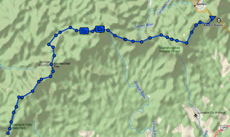 Double-A has completed 58.2 miles of the AT so far. He should be out of Georgia and in North Carolina on Monday.